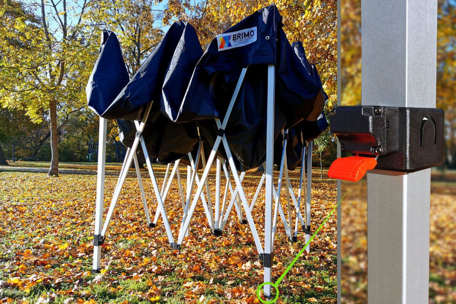 Tuul ei oma võimalusi. Pärast kolme tugeva seina paigaldamist saab luua rahuliku ja vaikse koha. Seinad kinnitatakse katusele ja jalgadele velcro abil. See on väga kiire ja lihtne kinnitamine ilma ühendusteta. Kui soovite telki täielikult sulgeda, saate osta neljanda seina, mis ootab teid meie veebisaidil lisatarvikutes. Sulgevast seina on uks ja akna rulooga. Telgile saab ka printida oma reklaami. Valmistame teile visuaalse ja hinnapakkumise vastavalt teie soovidele.