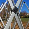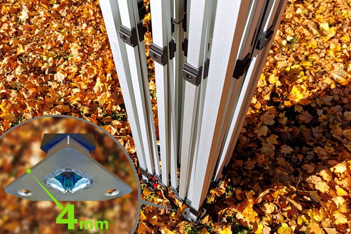 Alumiiniumkonstruktsioon on kerge ja iga profiilil on maksimaalselt 3 kruvi, mis muudab teenindamise lihtsaks, kui konstruktsioon on kahjustatud. Konstruktsiooniosad ja teenindus on tasuta! (lisainformatsioon müügitingimustes). Aastatepikkuse kogemuse ja katsete põhjal oleme mõningaid konstruktsiooniosasid vähendanud ja teisi tugevdanud. Seetõttu on veekindlad aiatelgid väga kerged ja vastupidavad.
