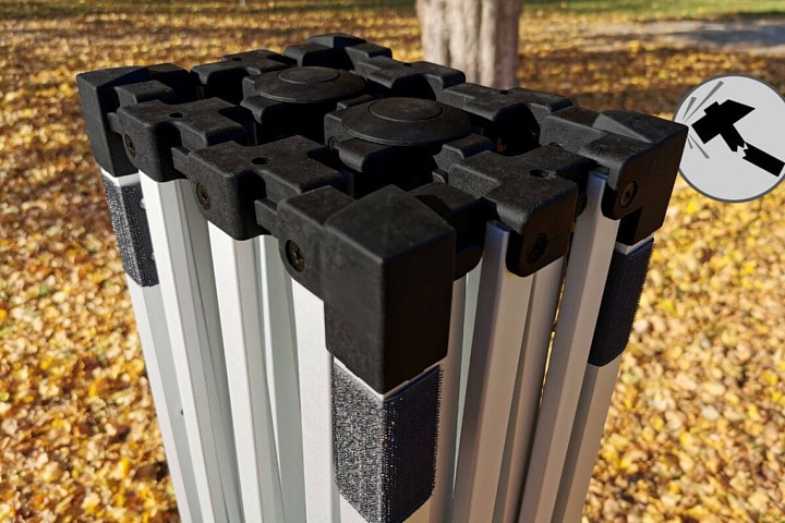 - Exclusive alumiinium mudel, mida kasutatakse tuule kiirusel kuni 60 km/h. Jalad aukudega maasse kinnitamiseks telgivaiade abil - tasuta!