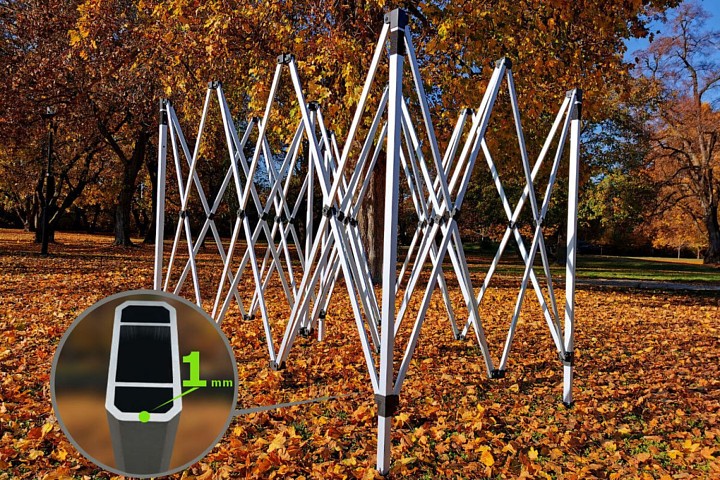 Veekindel aiatelk Exclusive alumiiniumist on meie kõige mugavam telk. Selle väike kaal säästab energiat, mis on vajalik muuks äriks. Kaupad, mida müüte, on paremini nähtavad, kuna veekindel aiatelk'il on külg avatud pikkusega 430 cm ilma keskmise jalata, nagu 3x6m ja 4x8m telkide puhul. Te ei vaja tööriistu ega juhiseid kokkupanemiseks.